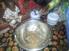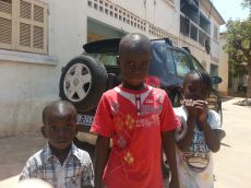 Per pranzo vado a casa di Abdou, ha invitato suo fratello Fallou e me. Pranzo caratteristico, con tutta la famiglia riunita davanti all'unico piattone di cheb-ou-jen e tutti che prendono da lì con cucchiai o con le mani. L'atmosfera è bella ed amichevole, c'è una bella sensazione di familiarità. I bambini sono vivacissimi e prima del pranzo mi subissano di domande, in francese e wolof.