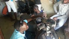 Alla fine Fallou ce la fa e insieme al meccanico iniziamo una riparazione volante al buio sul ciglio della strada..... Tra mille difficoltà e con lo smontaggio di mezzo scooter alla fine il ragazzo riesce con un magheggio a farlo funzionare, almeno quel che basta per poter tornare sano (si fa per dire...) e salvo (più o meno...) alla base.