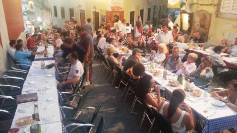 Il giovedì lo passo a riprendermi, poi nel tardi pomeriggio arriva una buona parte della ciurma e andiamo alla scoperta dellla città. Tra caldo e sonno faccio un po' fatica ad apprezzare il centro, in soccorso c'è sempre il Pippo che nei momenti di maggiore difficoltà convince tutti ad infilarsi in un bar per una birra rinfrescante. A cena il Gianlu si palesa e ci invita ad andare in una piazzetta all'aperto dalle parti del Barrio Alto, l'atmosfera è bellissima e come sempre ci facciamo ricnoscere, spazzoliamo 12 bottiglie di vino in 15 e facciamo girare piatti su tutte le variazioni di baccalao.... Il conto non perdona ma andiamo a dormire felici e soddisfatti.